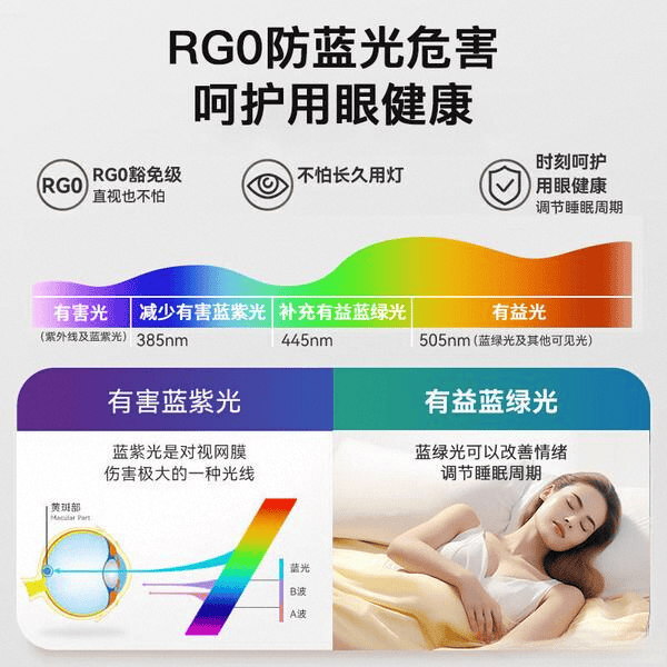 无频闪照明:该产品在使用时无频闪设计,减轻了对眼睛的疲劳,很适合长时间在室内环境中工作、学习或娱乐,为用户更好的保护视力,并提供舒适的光照体验。
