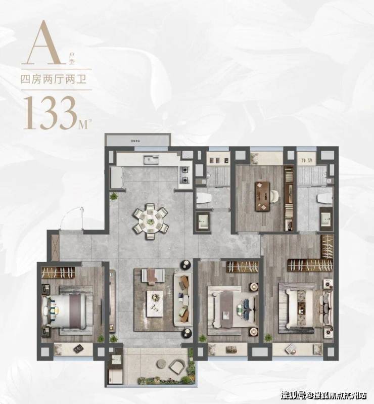 其次,项目约133㎡户型规划精妙,4房功用性足以匹配二胎或三代同堂家庭,格式上做到了惊人的四开间朝南+南北通透+主卧套房规划,采光通风功用和寓居舒适度都保持在较高水准。